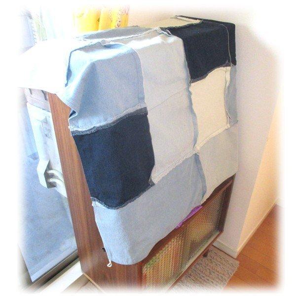 ユーズド加工を施したデニム生地をブロック状またはストライプ状に縫い合わせたデニムのマルチカバーです。