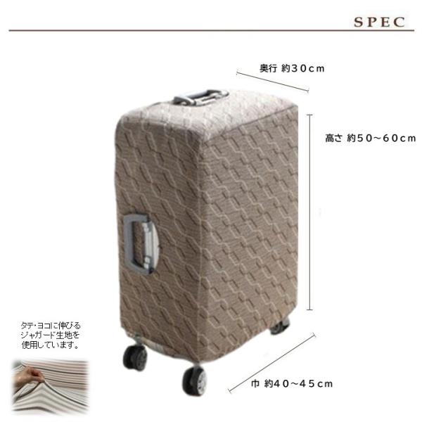 大切なケースを傷や汚れ、ほこりなどから守るキャリーバック用カバーです。伸縮性抜群なジャガード生地を使用、ぐーんと伸びてピタッとフィットします。上から被せてファスナーで留めるだけなので、飛行機に預ける時だけササッとセット!汚れたらもちろん洗えます。