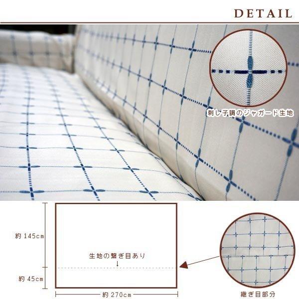 刺し子調のジャガード生地がさり気なく映えるマルチカバー。清潔感のあるチェック柄がラフでオシャレな雰囲気を作ってくれます。