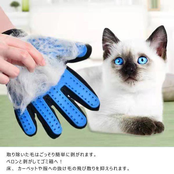 手に装着して撫でるだけ。グルーミングしながらマッサージもできるペットに優しいお手入れグッズです。