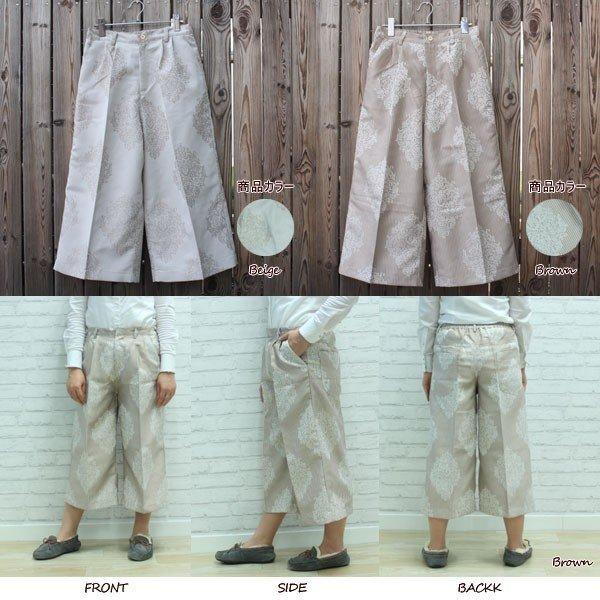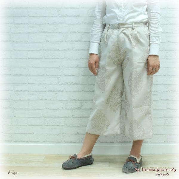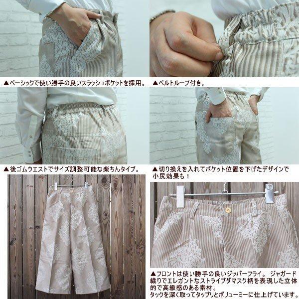 ワイドパンツ 部屋着 美シルエット ストライプダマスクジャガード