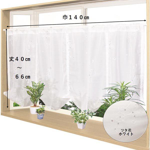カフェカーテン 幅140×丈66cm 1枚入り レースカーテン 小窓用 出窓用 スナップシェード 引越し カーテン インテリア