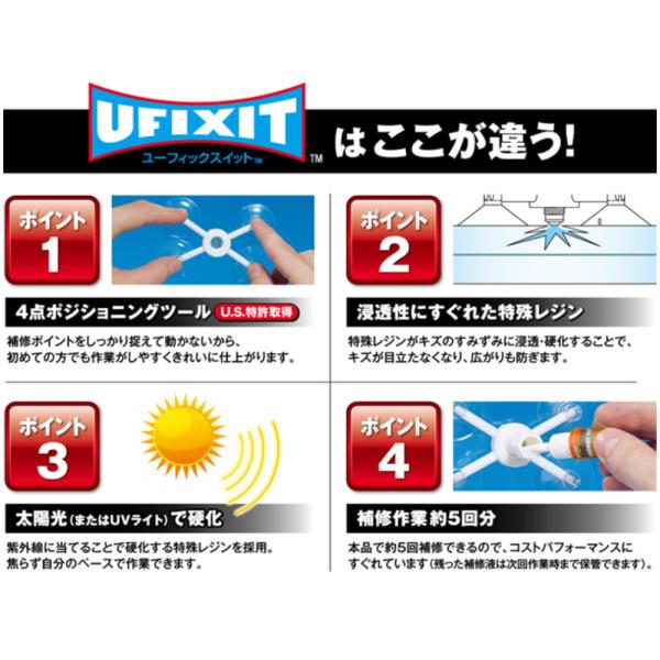 ユーフィックスイット 修繕 車 修理 自動車 ポジショニングツール uv 硬化 初心者 スター ブルズアイ チップ 4点 レジン 車ガラスリペア