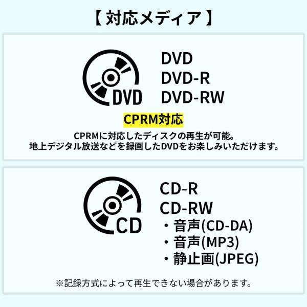 ■対応メディア:DVD / DVD-R / DVD-RW / CD / CD-R / CD-RW / USBメモリ(最大16GB)