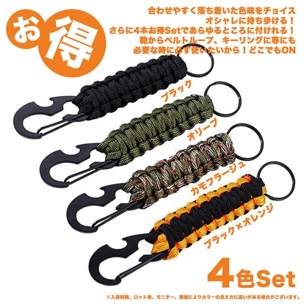 【4個入でお得】カラビナ パラコード キーホルダー キーチェーン 4本セット NEK ★REVM 7987344 帽子フック おしゃれ キーリング アウトドア リュック バッグ