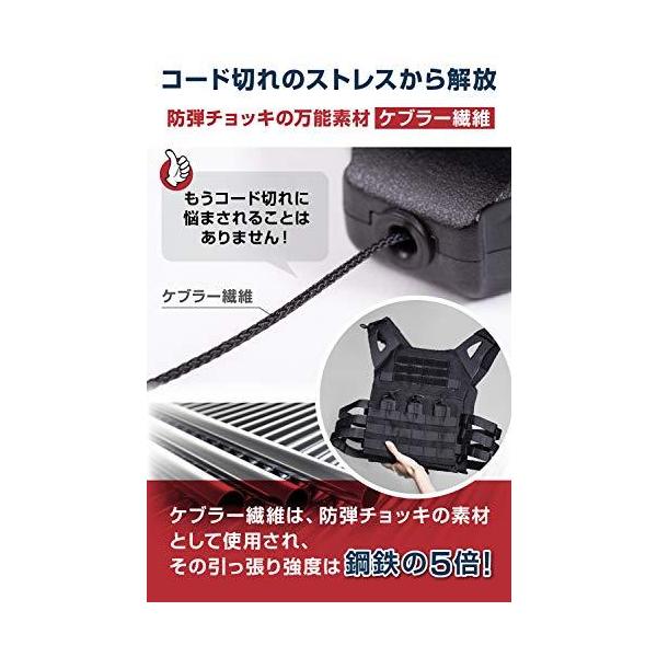 防弾チョッキで使用されるケブラー繊維を採用。ケブラー繊維の引っ張り強度は鋼鉄の5倍!