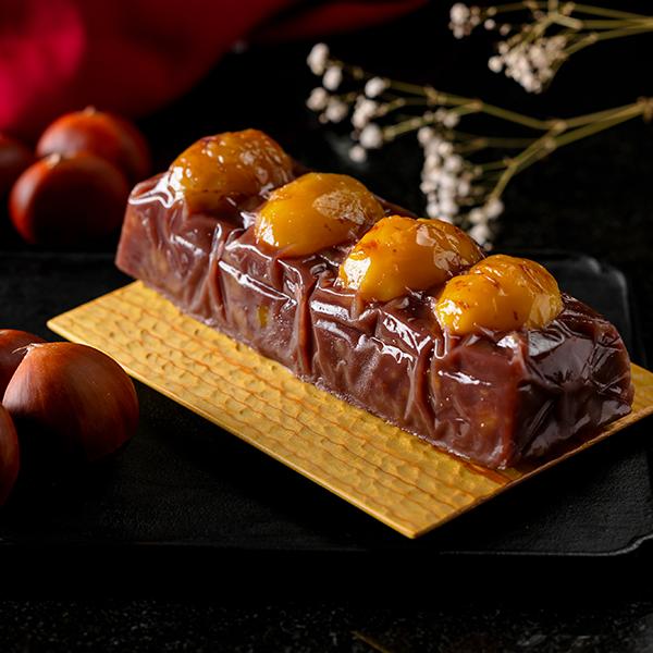 万羊羹笠間は、ホクホクとした食感が特徴の笠間栗を食べやすいよう、砕いた状態で羊羹部分に混ぜ込み小豆と栗の風味を最大限引き出しました。