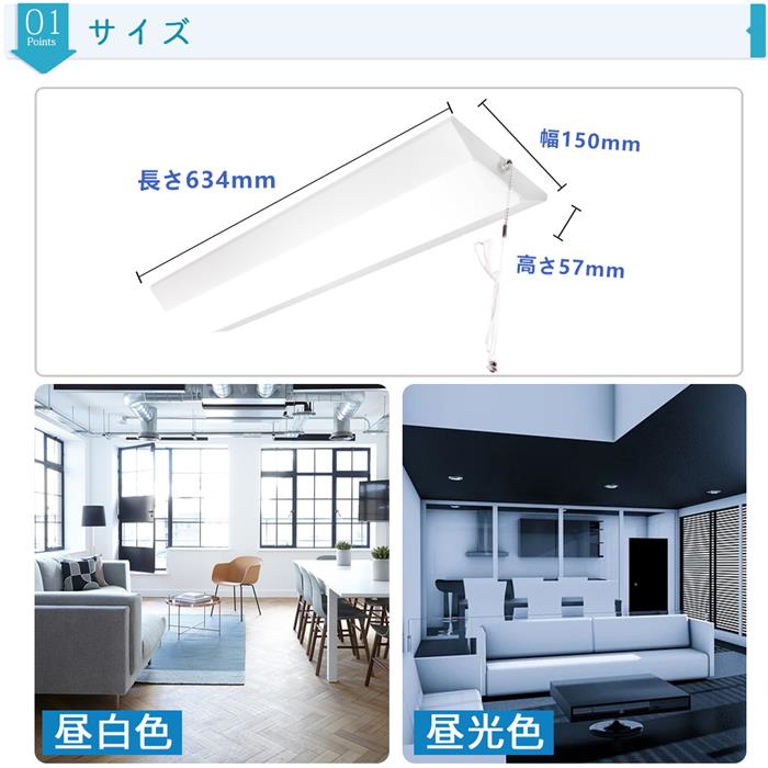 LED蛍光灯 ledベースライト 器具一体型 スイッチ付き 20W型 2灯相当 逆富士型 632mm 2560LM 天井照明 シーリングライト 1年保証