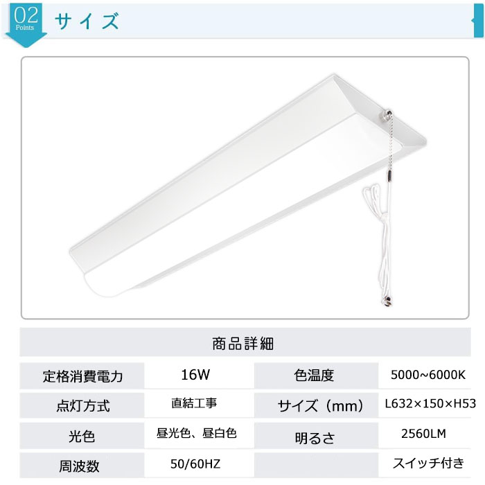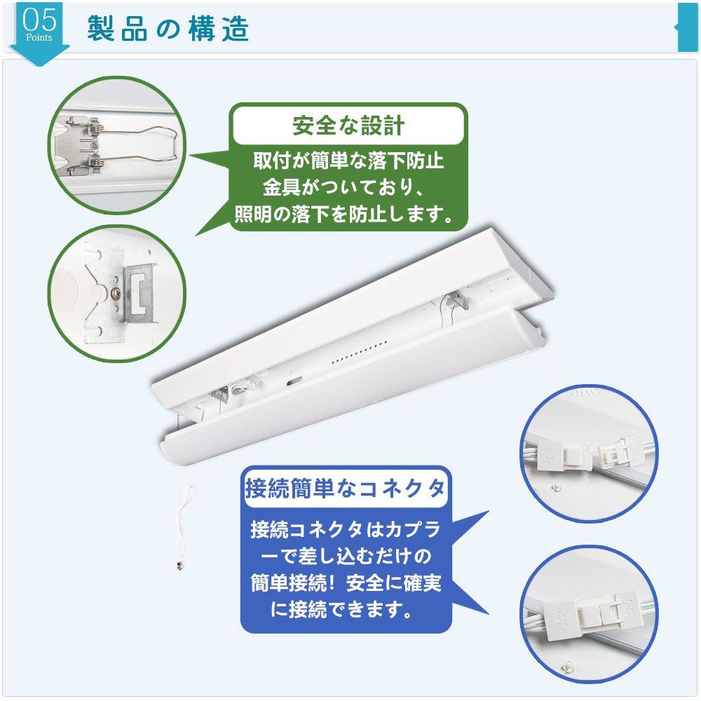 器具一体構造LED蛍光灯電源配線するだけでそのまま使えます。