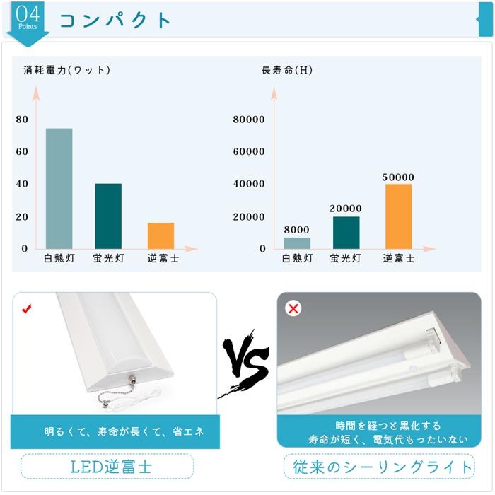 ledベースライト 器具一体型 スイッチ付き 20W型 逆富士型