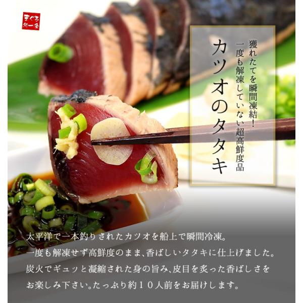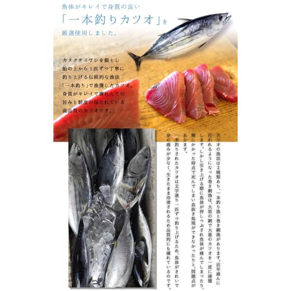 ずっしり1キロあるから食べ放題!もちろんタレ付き。鮮度抜群の一本釣りカツオを使用!。真空パックのまま水に5〜10分つけておくだけ簡単解凍、安心の国内産カツオを使用しています!