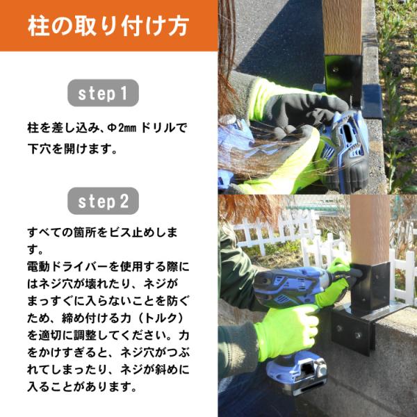 60mm角ポストを15cmのブロックに固定する場合使用できます。万力の要領でブロック塀をガッチリ掴み、ラティス用の柱をしっかり支えます!