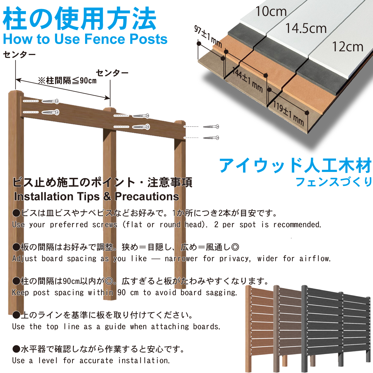 ※材質と色についてご心配の方は、事前に弊社のアイウッド人工木カラーサンプルをご購入いただき、商品色をご確認の上でご購入ください。