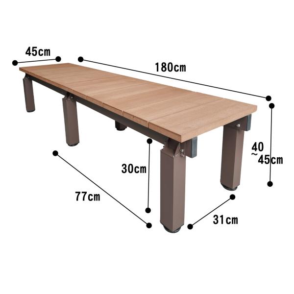 縁台 人工木&アルミ製 アイウッド DX1845 ナチュラル 長さ1800×奥行450×高さ400 1845N 高さ調整 連結延長可能 組立簡単 濡れ縁 ベンチ 爆買