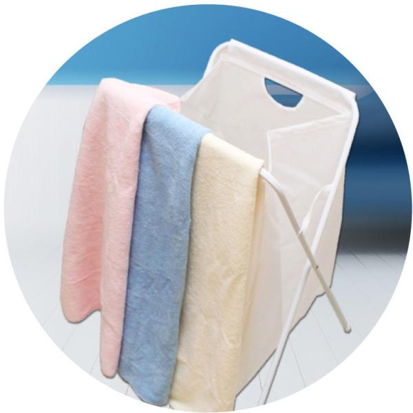 ●綿のタオルと違い、軽くふくだけで水分を吸水するソフト肌触りで、いたんだ髪やお肌に敏感な赤ちゃんにも最適!