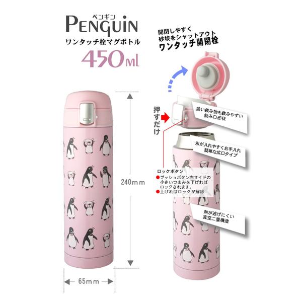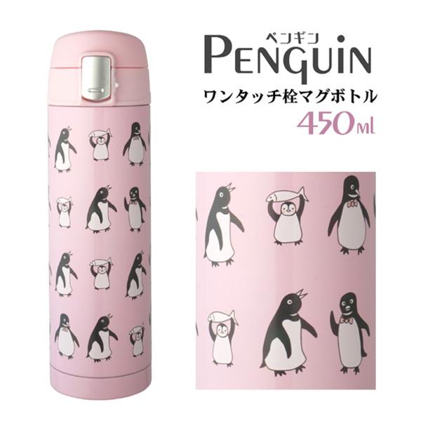 送料無料 ペンギン 直飲みワンタッチ栓 ステンレスマグボトル 450ml ぺんぎん 水筒 ステンレス製 保温 保冷 真空断熱 魔法瓶 すいとう ステンレスボトル