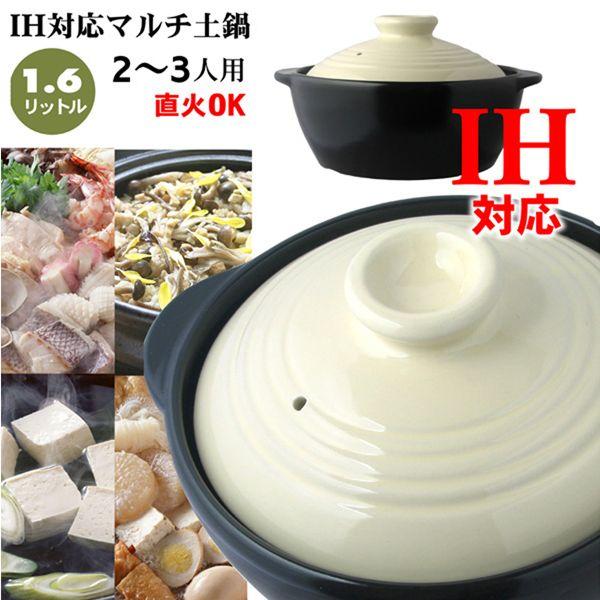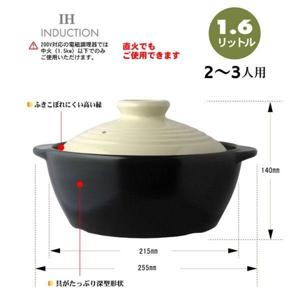 IH調理器 ガス直火対応 マルチ土鍋 7号 1.6リットル (2-3人用) ブラック&ホワイト