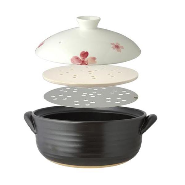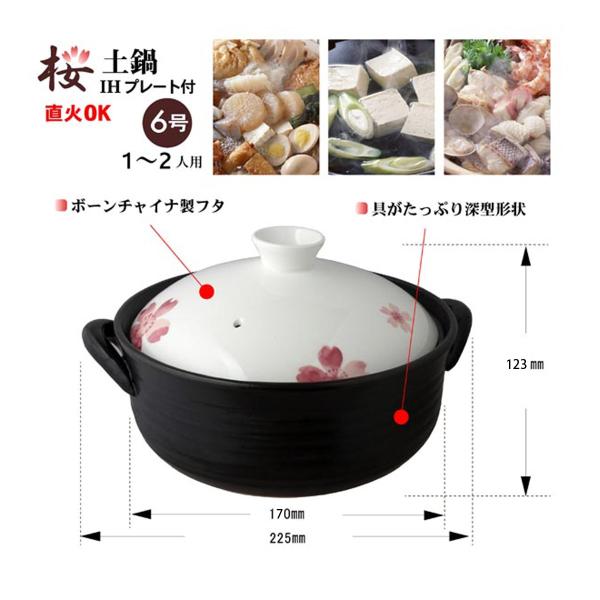 IH調理器 ガス直火対応 土鍋 さくら 6号 1人用 桜 ボーンチャイナ製 蓋仕様