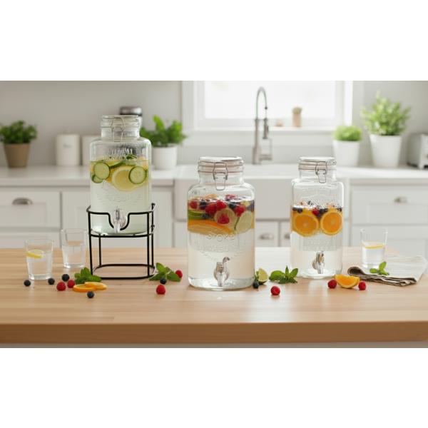 ガラス ドリンクサーバー 3L 蛇口 スタンド付き 業務用 おしゃれ 梅酒作り 果樹酒 瓶 ガラス製保存容器