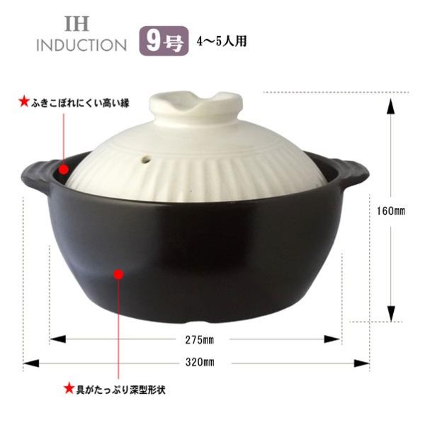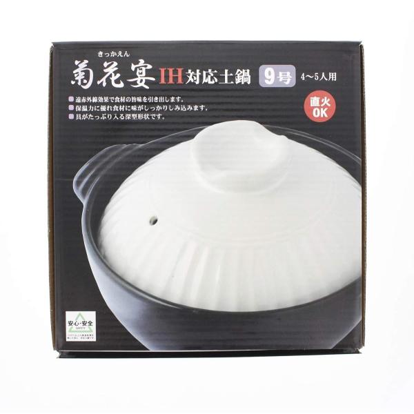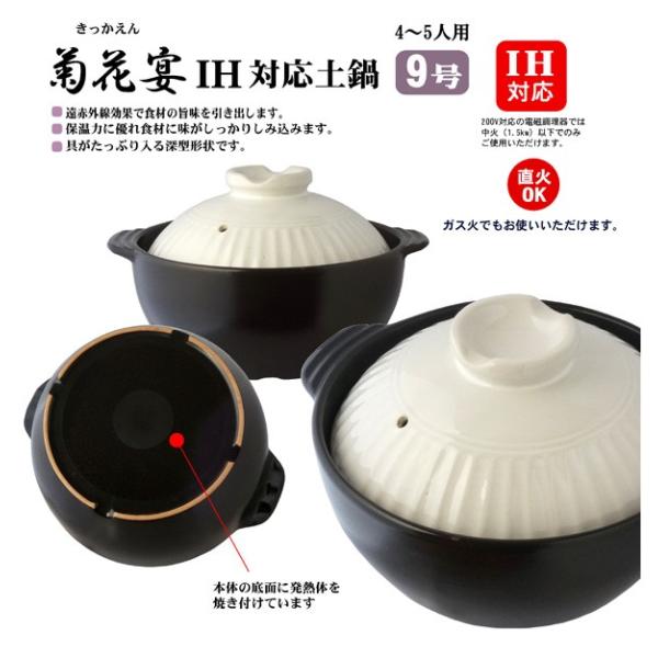 IH調理器 ガス直火対応 土鍋 菊花宴 9号 深型 (4-5人用) ふきこぼれにくい土鍋