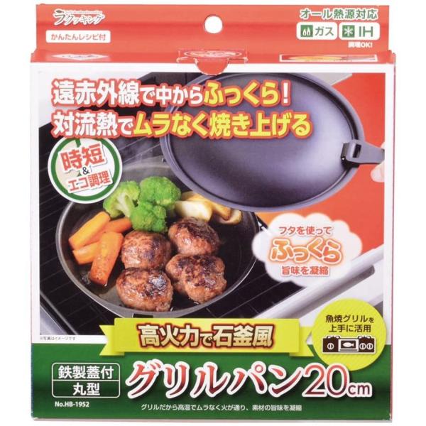 パール金属 【日本製】ラクッキング 鉄製 蓋 ・ ハンドル 付 丸型 グリルパン 20cm HB-1952