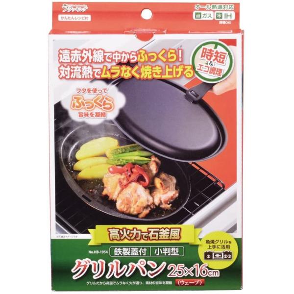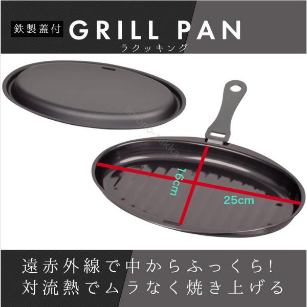 パール金属 HB-1954 ラクッキング グリルパン 25×16cm 日本製 鉄製 蓋 ハンドル付 小判型 ウェーブ 簡単 レシピ付
