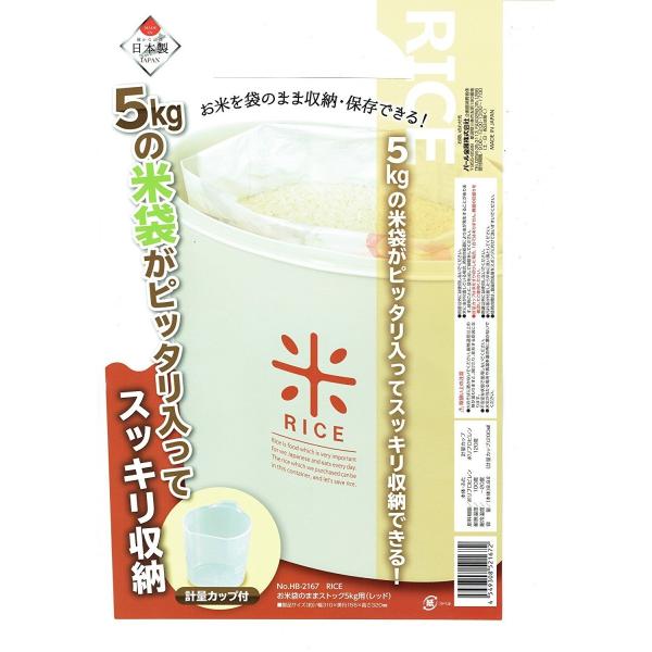 パール金属 日本製 米びつ 5kg レッド 計量カップ付 お米 袋のまま ストック RICE HB-2167