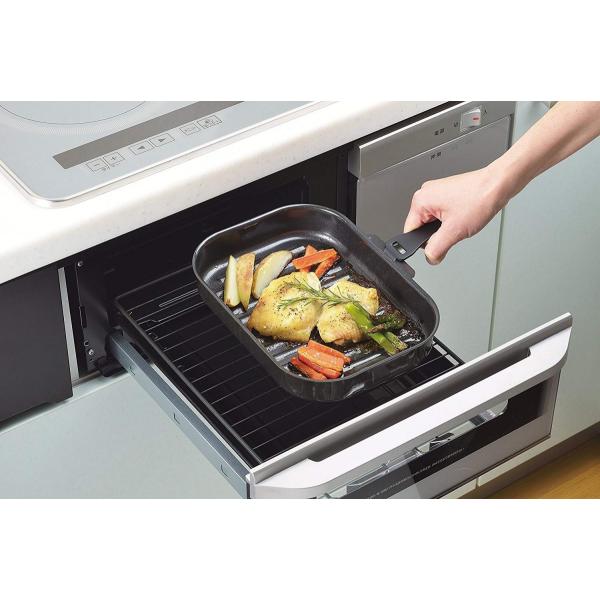 ●コンロの魚焼グリルでかしこく本格調理。オーブンよりも短時間で調理可能。ピザならオーブンの約1/3の時間で調理出来ます。