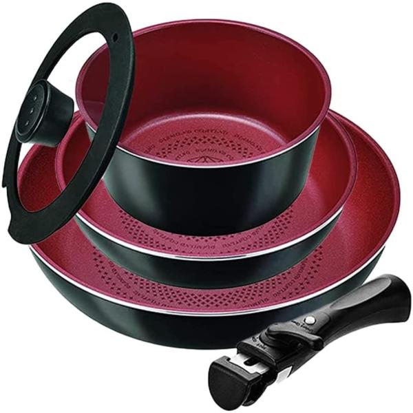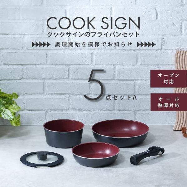 パール金属 HB-5621 クックサイン ダイヤモンドコート IH対応 調理器具5点セット A 【マルチポット18・フライパン20・フライパン26・ガラス蓋・専用ハンドル】