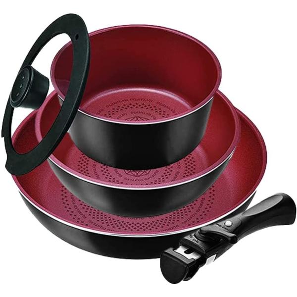 パール金属 HB-5622 クックサイン ダイヤモンドコート IH対応 調理器具5点セット B 【マルチポット18・フライパン26・いため鍋20・ガラス蓋・専用ハンドル】