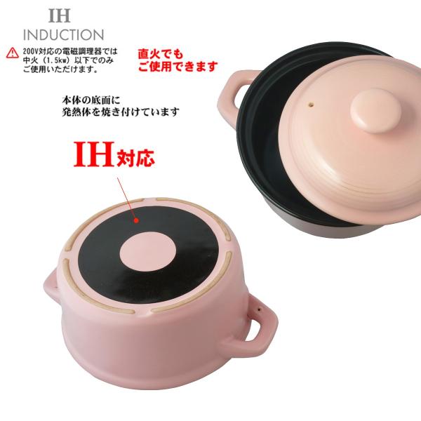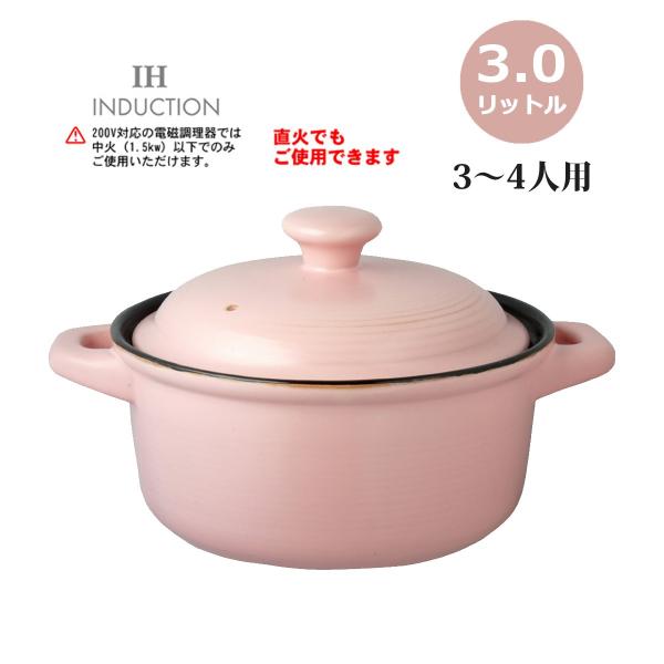 IH 直火どちらでもOK オシャレな ニュー IH対応 欧風 土鍋 24cm ピンク 8号 3.0L ポトフ鍋 (3〜4人用)