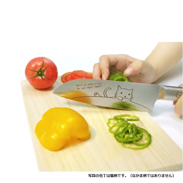●かわいい2匹のネコ(なかま柄)のイラスト柄が入ったかわいいデザインの包丁です。可愛いだけじゃなく、非常に鋭い切れ味です。