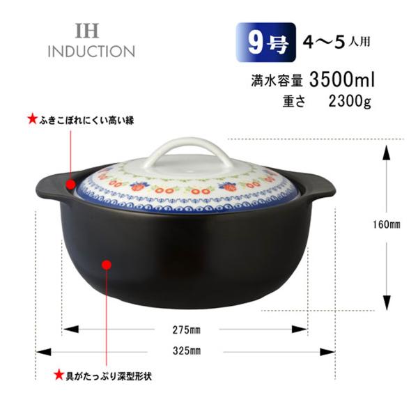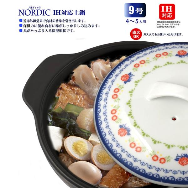 IH調理器 ガス直火対応 土鍋 9号 ノルディック 北欧柄 3.5L (4〜5人用)
