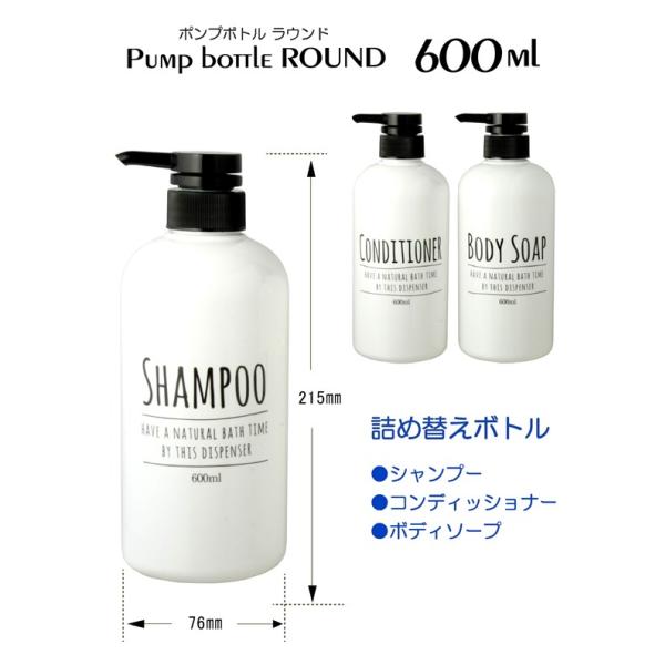 ディスペンサー ポンプボトル ラウンド 3本セット ホワイト 600ml 詰め替え容器