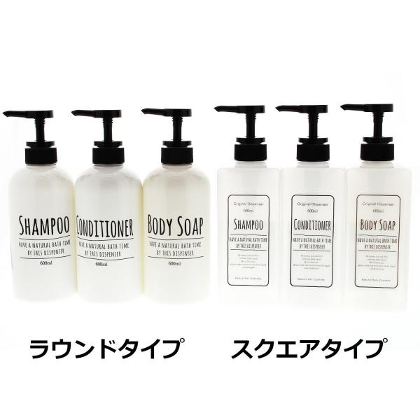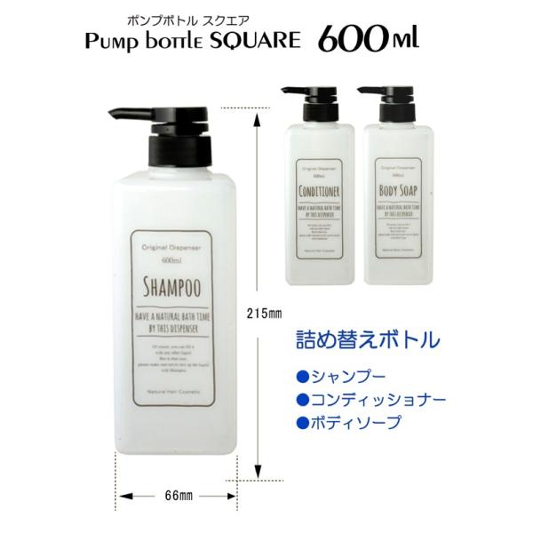 ディスペンサー ポンプボトル スクェア 3本セット ホワイト 600ml 詰め替え容器
