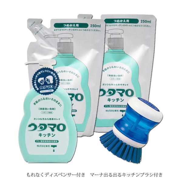 ウタマロ キッチン 300ml+詰替250ml×2個 セット (もれなく マーナ 出る出る キッチンブラシ プレゼント)