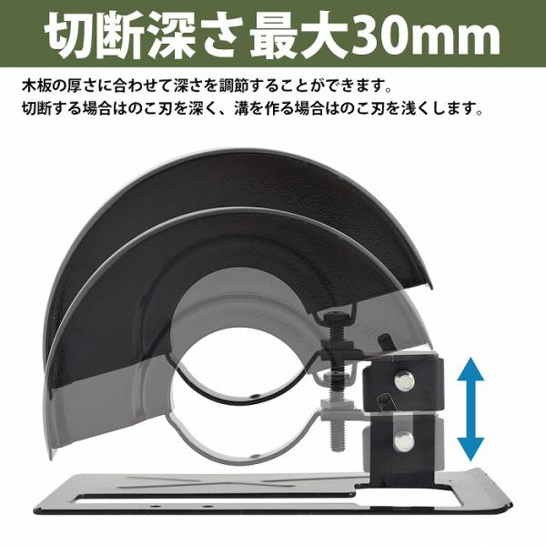 切断する場合はのこ刃を深く、溝を作る場合はのこ刃を浅くします。
