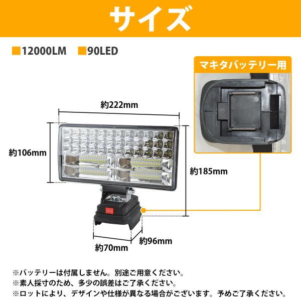 12000LM 90LED マキタ 互換 ワークライト 14.4V 18V 対応 type-C USB 急速充電 作業灯 キャンプ 釣り 集魚灯 投光器 防災 照明