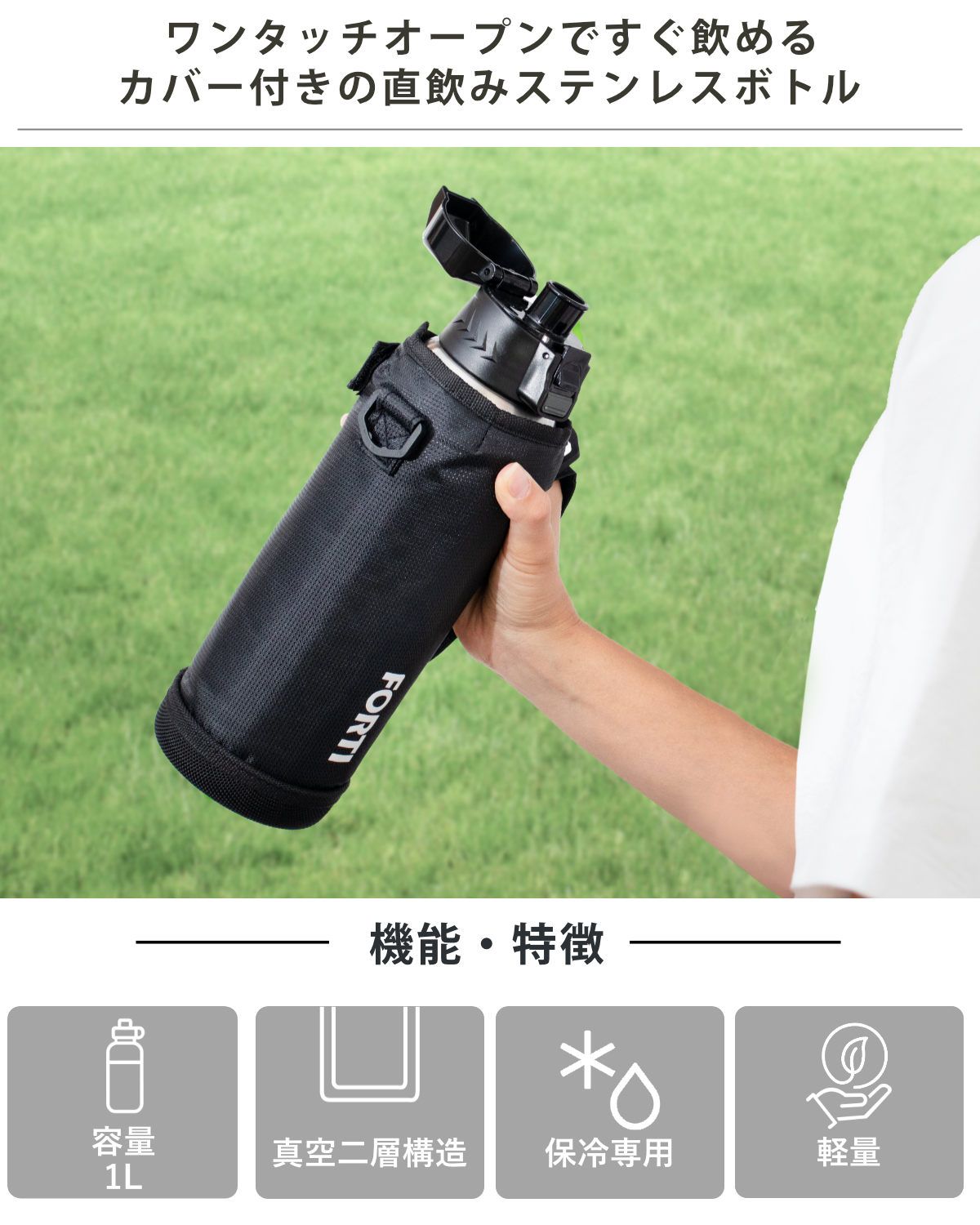 水筒 直飲み 1L カバー付 NEWフォルティ 保冷専用 ( 1リットル ダイレクトボトル ステンレスボトル 保冷 すいとう ボトル スポーツボトル シンプル )