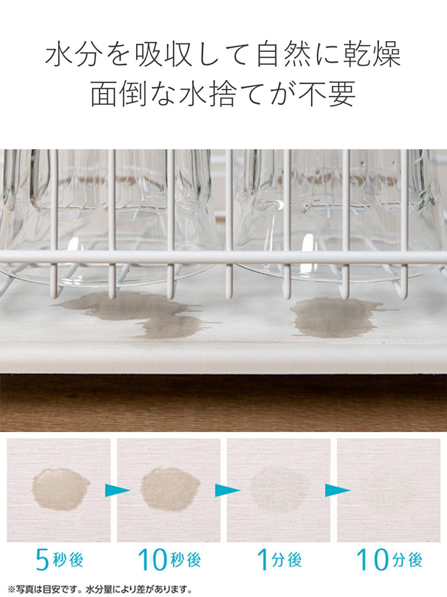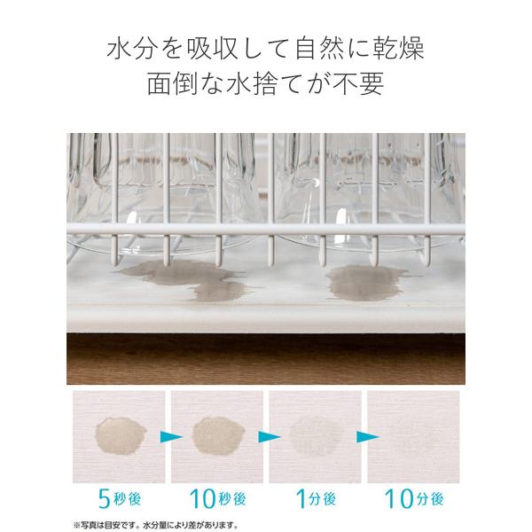 ●珪藻土トレーの力でサラッと速乾、洗い終わった食器類の水滴を吸着乾燥させます。