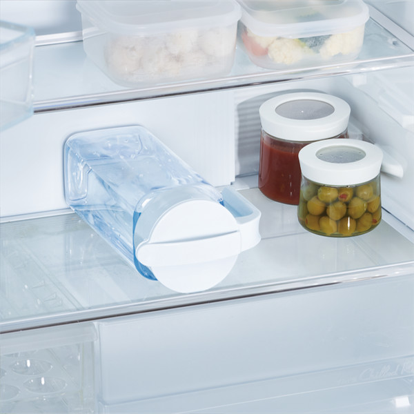 ●スリムなスクエアタイプなので、冷蔵庫のドアポケットにもスッキリ収まります。
