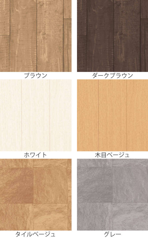 種類/ブラウン、ダークブラウン、ホワイト、木目ベージュ、タイルベージュ、グレー、ブラック、柄タイルグレー、木目