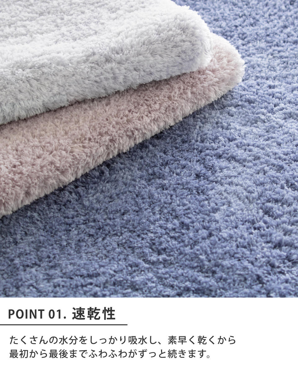 湯あがりの水分を素早く吸収、いつでもさらふわなバスマット