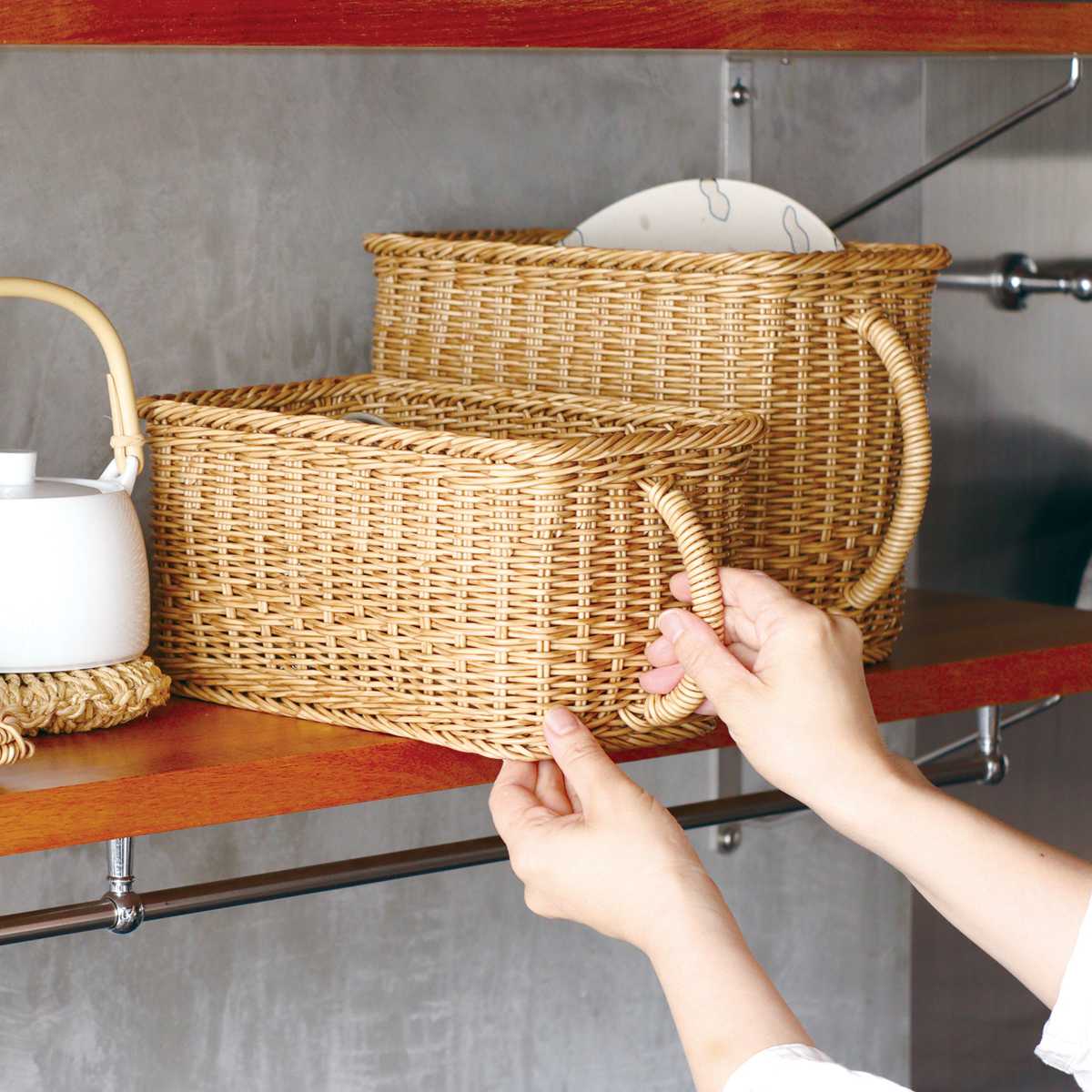 ●汚れたらさっと水拭きできる、キッチン収納に最適なポリプロピレン製のストッカーバスケットです。