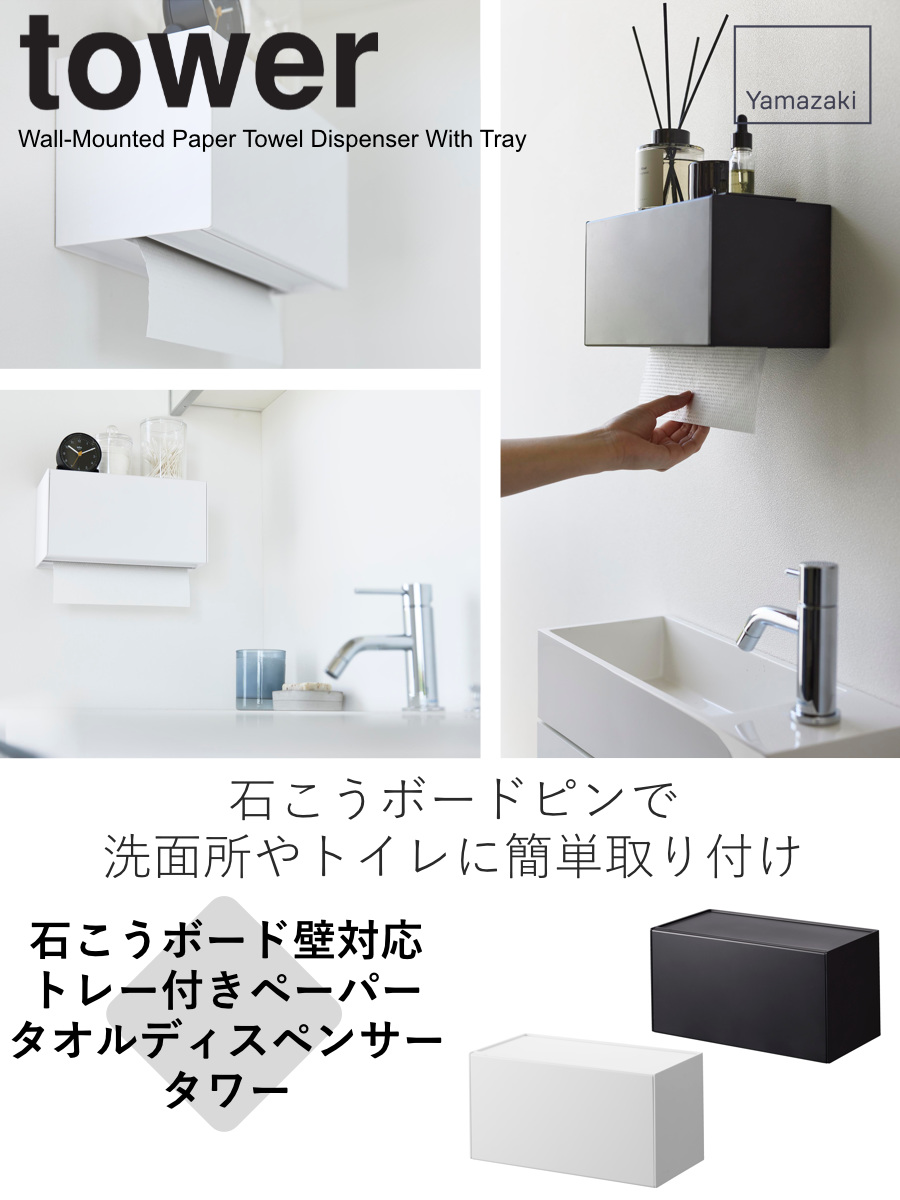 山崎実業 tower 石こうボード壁対応トレー付きペーパータオルディスペンサー タワー ( 4903208020039 タワーシリーズ )