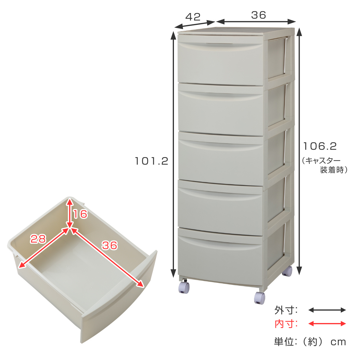 チェスト 5段 Roocent(ルーセント) 幅36×奥行42×高さ106.2cm キャスター付き ( 収納ケース 引き出し 収納 タンス プラスチック 洋服 衣類 収納チェスト )