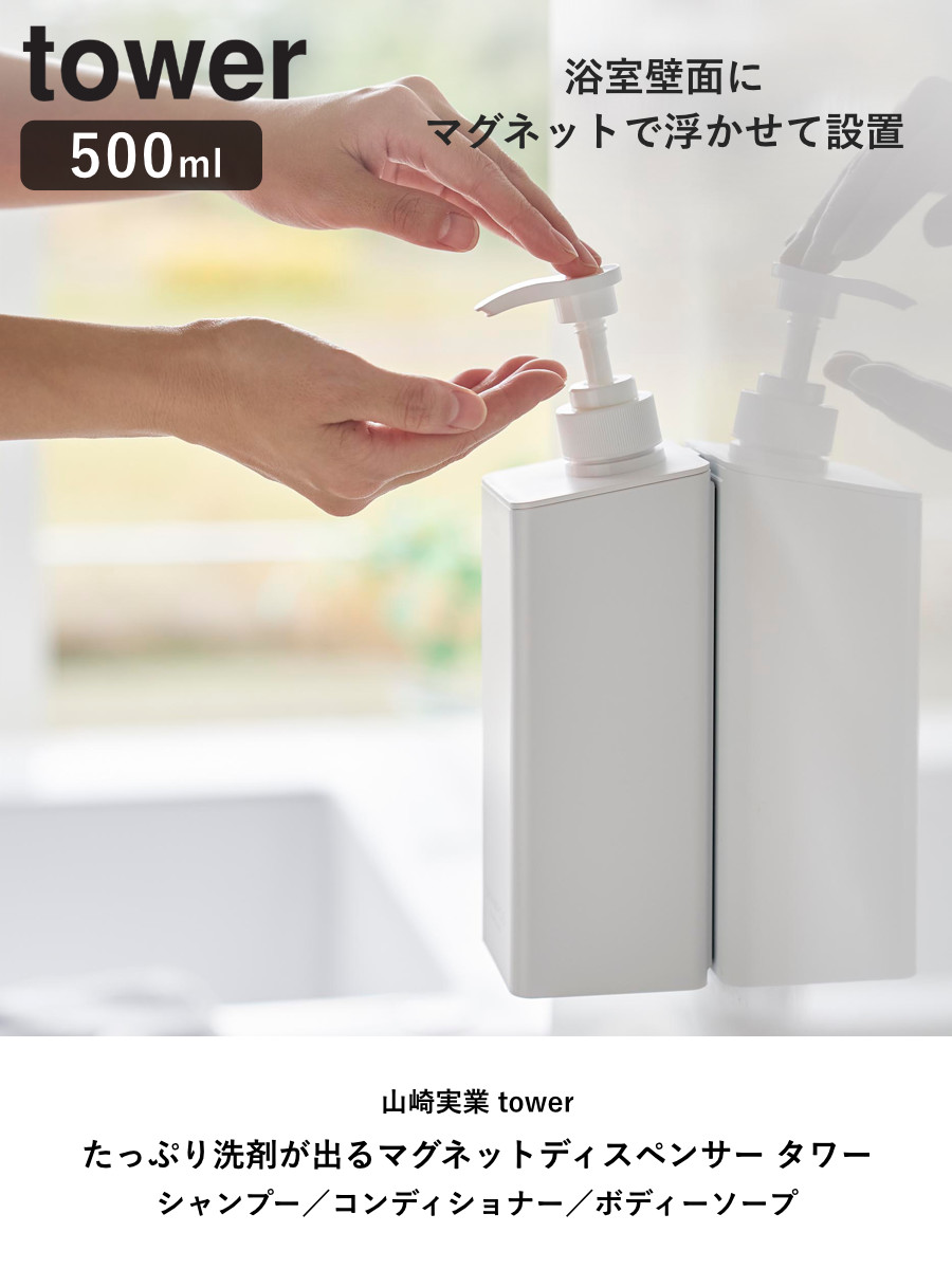 山崎実業 tower たっぷり洗剤が出るマグネットディスペンサー タワー シャンプー コンディショナー ボディーソープ ( 4903208015325 タワーシリーズ )