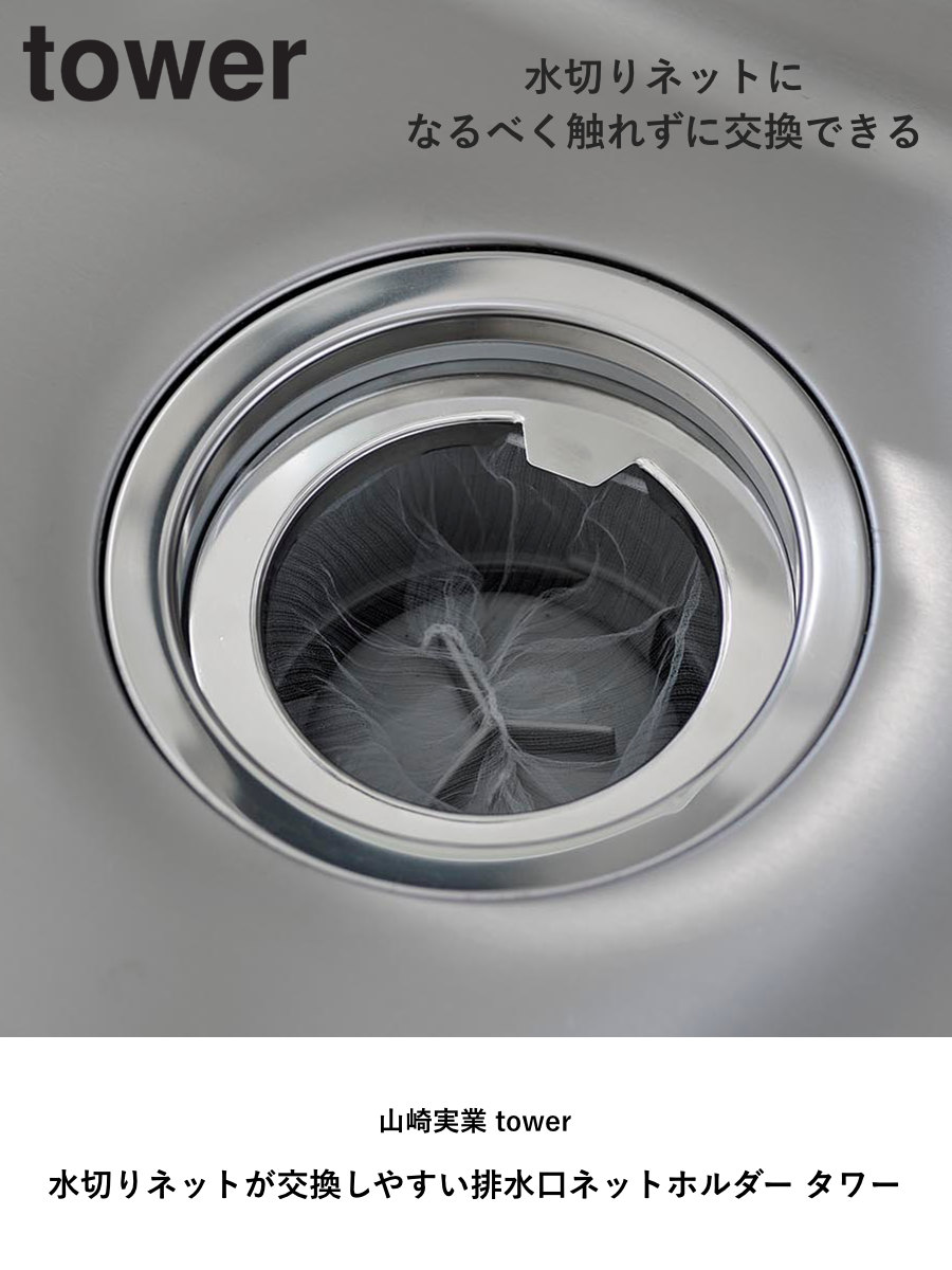 水切りネット 交換しやすい ごみ受け 水切り 排水 ネット シンク ステンレス 4903208101783 yamazaki towerシリーズ 山実 YAMAZAKI 山崎 やまじつ シンプル スタイリッシュ キッチン ネットホルダー 便利グッズ 流し ストッキング 不織布 排水口ごみ受け 排水口用 流し用ごみ受け 流し用ゴミ受け 清潔 使いやすい 台所 ゴミ 生ごみ 生ゴミ 排水用品 水廻り 水周り 便利用品 水まわり 清掃 水まわり用品 キッチン用品 おすすめ 人気 便利 日常使い 掃除 キッチン掃除 LH17957
