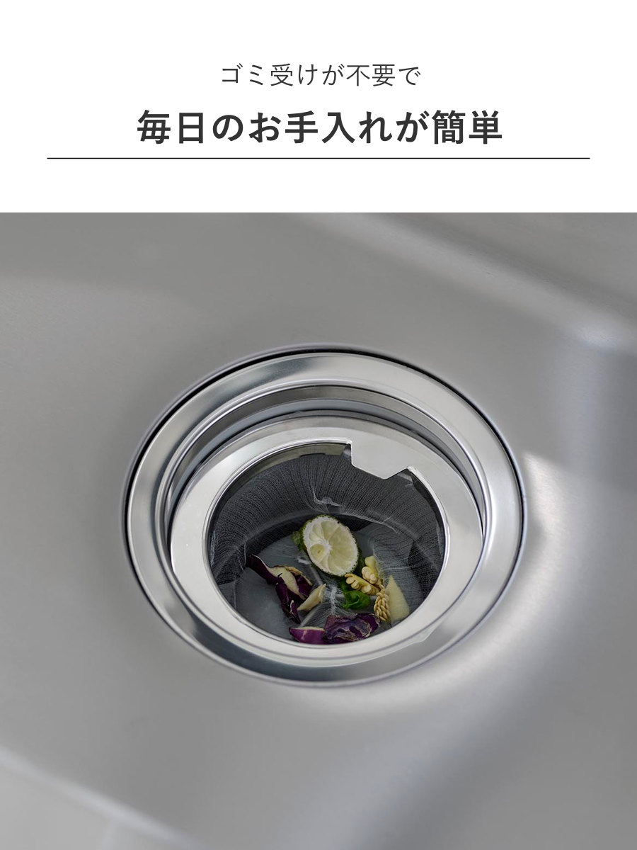 ●裏側に水切りネットを取り付けるので見た目がスッキリしています。