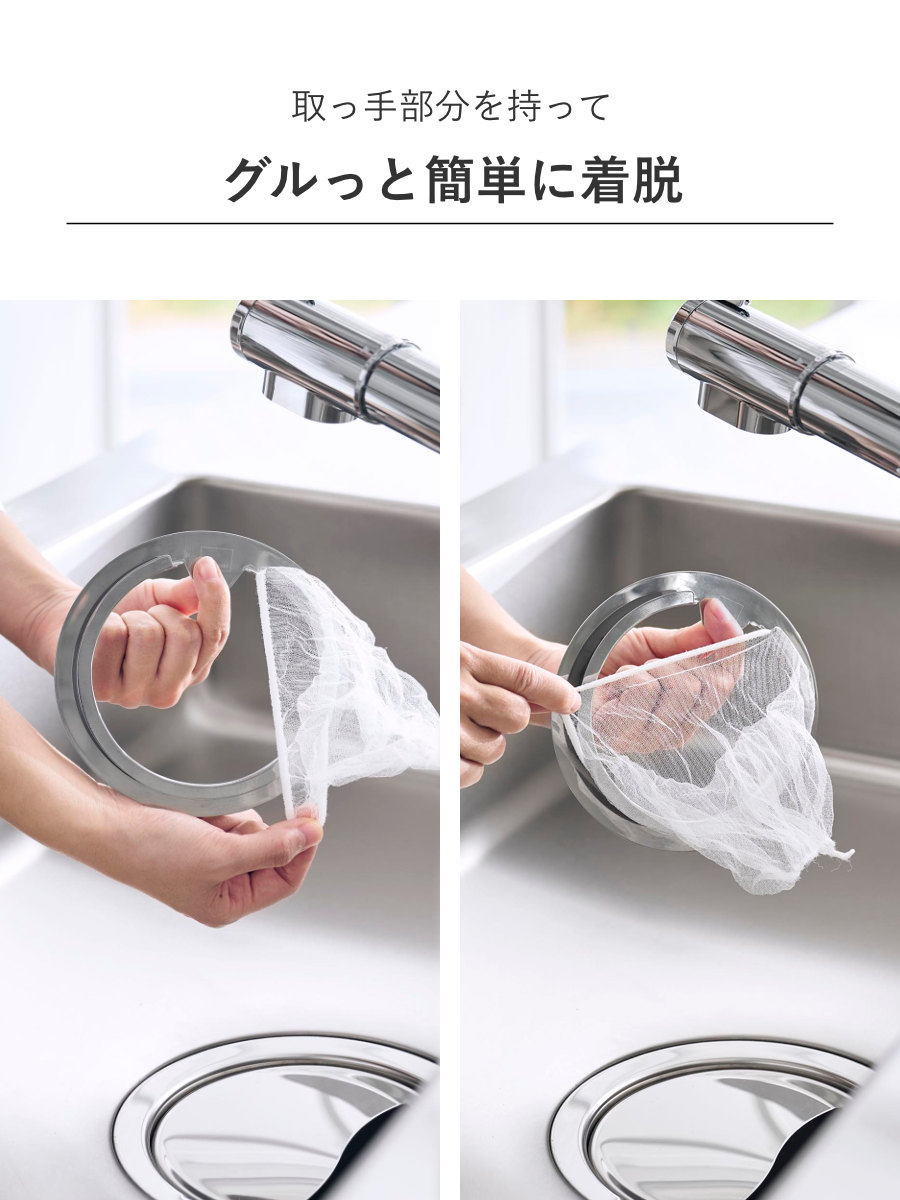 汚れた水切りネットになるべく触れずに交換できる